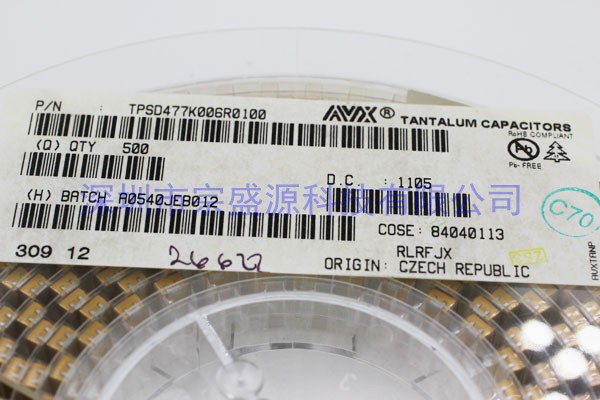 AVX鉭電容 TPS系列 TPSD477K006R0100 7343 6.3V 470UF D型 447J型號:TPSD477K006R0100電壓:6.3V容值:470UF型號:D型精度:±10% AVX鉭電容,AVX就是一家從事無源電子元器件和互連接產(chǎn)品的設(shè)計、開發(fā)、生產(chǎn)和銷售的公司,鉭電容是由稀有金屬鉭加工而成,先把鉭磨成微細粉,再與其它的介質(zhì)一起經(jīng)燒結(jié)而成。目