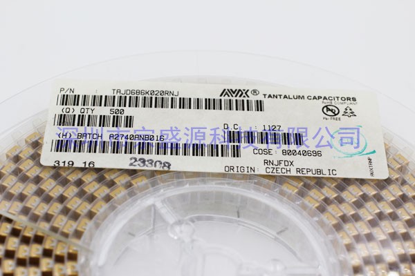 AVX鉭電容 7343-31 20V 68UF D型 686D TAJD686K020RNJ型號:TAJD686K020RNJ電壓:20V容值:68UF型號:D型精度:±10% AVX鉭電容,AVX就是一家從事無源電子元器件和互連接產品的設計、開發、生產和銷售的公司,鉭電容是由稀有金屬鉭加工而成,先把鉭磨成微細粉,再與其它的介質一起經燒結而成。目前的工藝有干