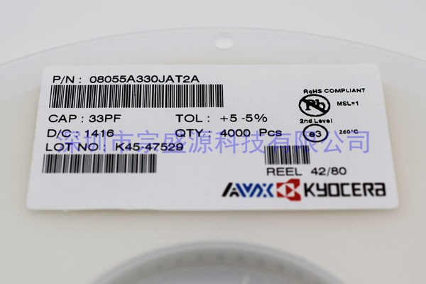 AVX陶瓷電容 0805 50V 33PF 08055A330JAT2A